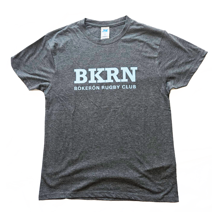 La camiseta gris de cuello redondo y manga corta: la versión sobria del uniforme no oficial de todo Bokerón. Igual de cómoda que la versión azul tanto para una tocata en la playa, aunque más elegante para el tercer tiempo e igual de resistente para aguantar un entreno… o al menos sobrevivir al calentamiento.