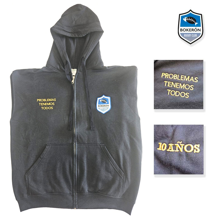 La sudadera del 10º aniversario Bokerón: porque cumplir 10 años como club veterano tiene mérito… y dolores de rodilla de regalo. Con el lema oficial PTT – Problemas Tenemos Todos, esta prenda es mucho más que abrigo: es declaración de principios.